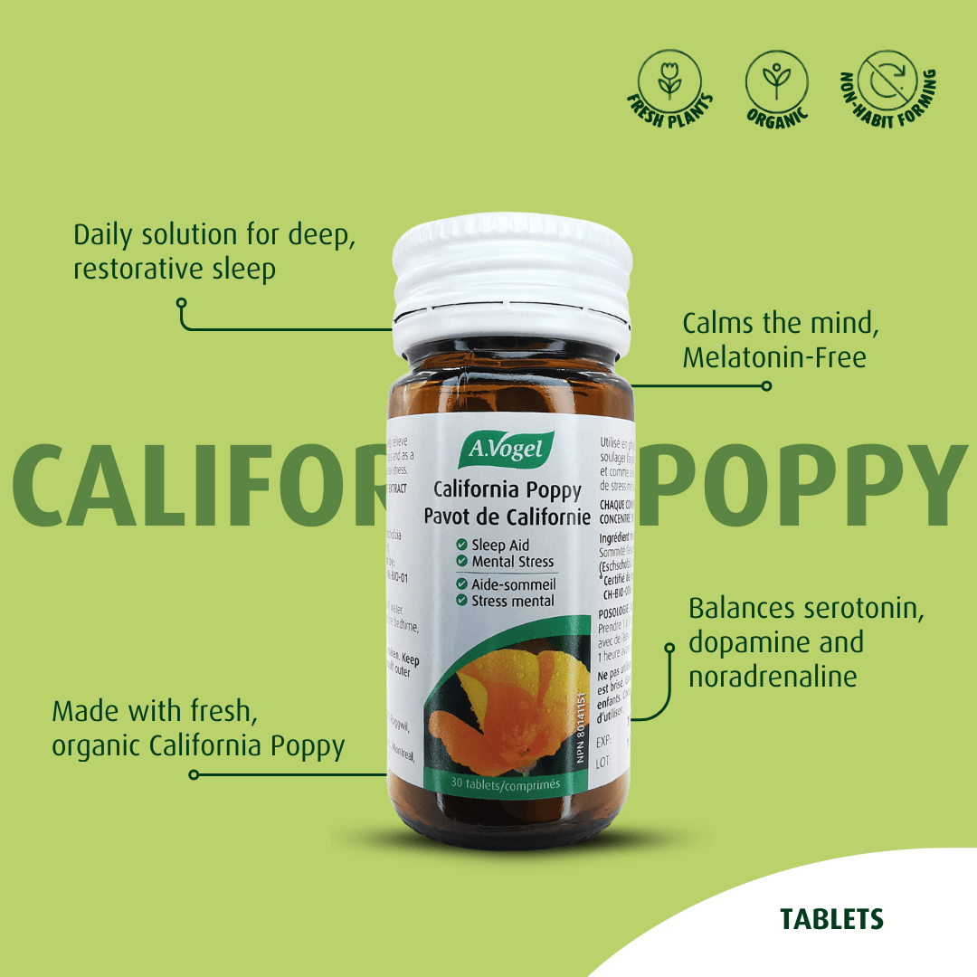Say goodnight to restless nights with the power of California Poppy – daily solution for deep, restorative sleep.